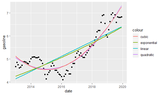 #lm(formula = log(gasoline) ~ date, data = gasoline_df)