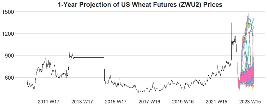 labs(title="1-Year Projection of US Wheat Futures (ZWU2) Prices",
